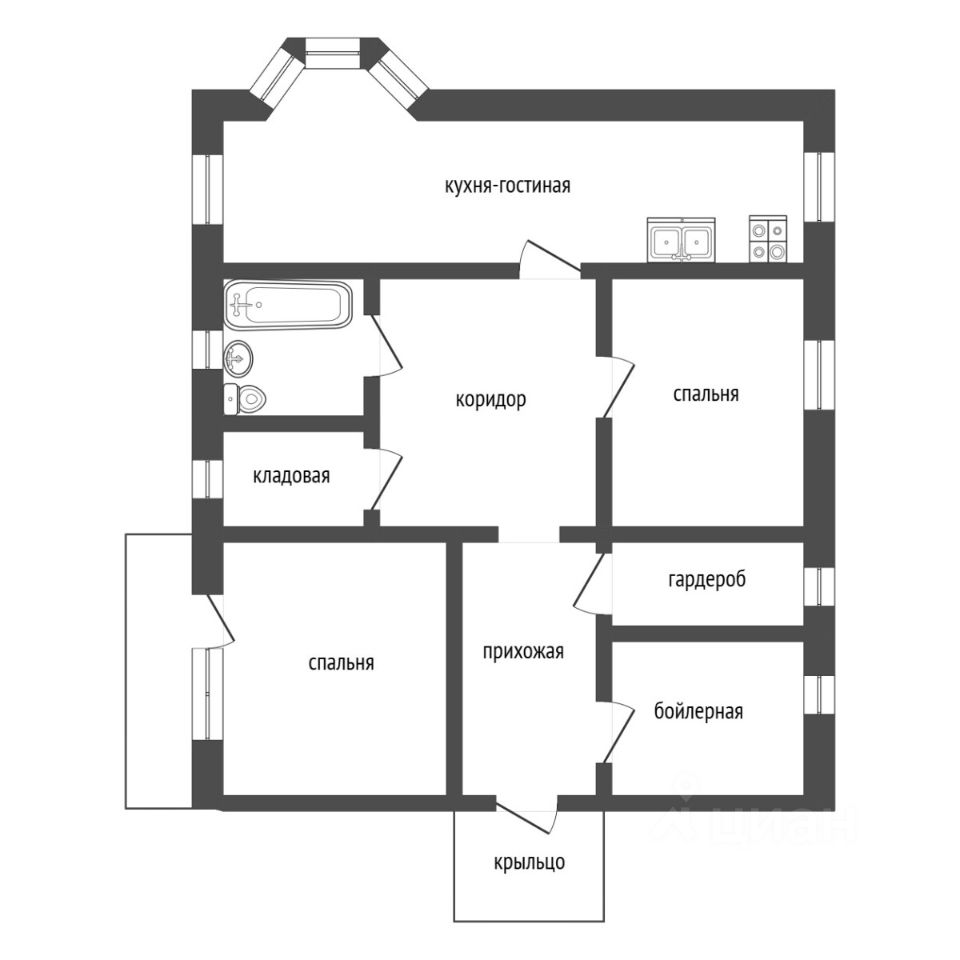 - Две изолированные комнаты, кладовая, гардеробная и котельная