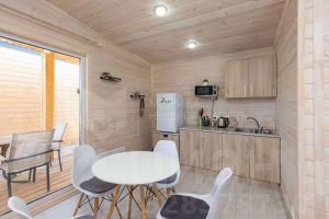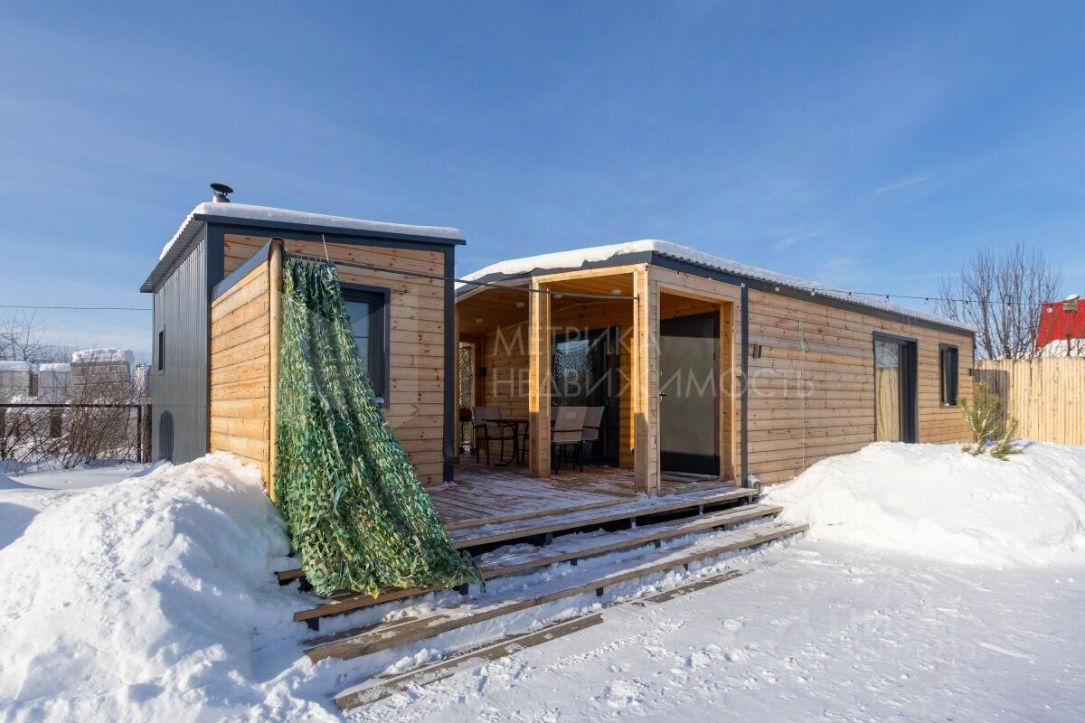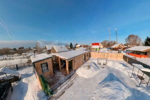 Современные дом и баня в скандинавском стиле с террассой, идеально подходящие для русской зимы и построенные по каркасной технологии для круглогодичного проживания. К дому ведёт широкий асфальт, свой собственный заезд. В обществе центральная вода и газ, стояк выведен у дома.