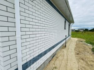 ХАРАКТЕРИСТИКИ ДОМА: стены - керамзитоблок 300мм, утеплитель-пенопласт прессованный, фундамент- монолитная плита с коммуникациями, мягкая кровля. Фасад - кирпич.