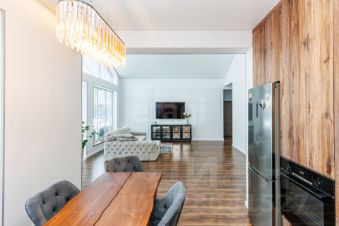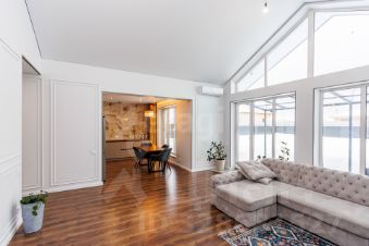 Современный дом в поселке Молодежный расположен в 15 минутах езды от города по Московскому тракту. Объект отличается продуманной планировкой и высоким качеством отделки. Панорамные окна обеспечивают обилие естественного света, создавая ощущение простора. На первом этаже расположена просторная кухня-гостиная с высотой потолков в козырьке 6 метров, объединенная со вторым светом, что придает интерьеру легкость и воздушность. Дополнительные преимущества — три изолированные комнаты с гардеробной, два санузла (гостевой и семейный), а также теплый гараж в доме.