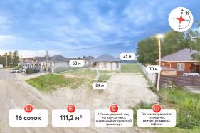 К дому прилагается ровный участок земли площадью 16,89 соток, открывающий широкие возможности для ландшафтного дизайна и отдыха на свежем воздухе.
