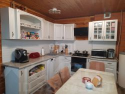 Продается просторный дом площадью 160 кв. из клееного бруса м в деревне Коняшина на участке 16,37 соток. На первом этаже: кухня, гостиная, столовая, 2 комнаты, санузел, на втором этаже: 3 спальни, санузел.