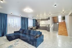 Просторная кухня-гостиная площадью около 60 м² с высокими потолками 2,8 метра подарит вам ощущение свободы и комфорта. Вода подается из скважины с подогревом в отдельном колодце, а септик на 10 кубов обеспечит все удобства на вашем участке.
