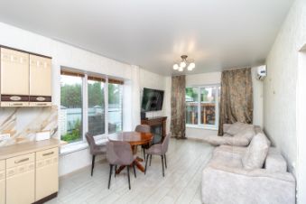 Просторная планировка включает в себя большую кухню-гостиную 23 м.кв и две светлые спальни по 12,5 м.кв, совмещённый санузел 4.0 м.кв и котельную.