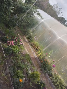 Есть теплица, сарай как кладовая, дровяник, баня в реставрации ( сруб из кругляка сделан под крышу, выведена печь со стояком кирпичная, вода заведена горячая, холодная). А так же две больших яблони плодоносящие, вишня, малина, смородина чёрная.