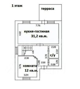 1 этаж - просторная кухня - гостиная 31 кв.м., создадут уютную атмосферу для вашей семьи, спальная, большой санузел, кладовая под лестницей.