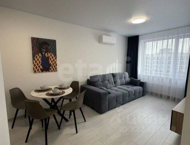 Полностью укомплектована техникой и мебелью: Варочная панель, кухонный гарнитур, духовой шкаф, вытяжка, микроволновая печь, стол раскладной, стулья, ТВ, шкафы, диван раскладной, стиральная машина, посудомоечная машина, кровать, кондиционер.