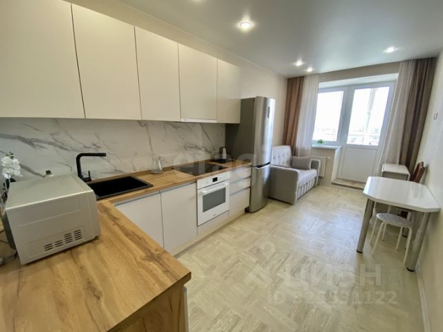 Продается прекрасная квартира формата 1+ с большой кухне-гостиной площадью 41 кв.м. В квартире сделан современный ремонт и з качественных материалов. Отличное расположение этого жилья в одном из самых востребованных новых районов, примыкающих к престижному коттеджному поселку Комарова и Тюменской слободе. Благодаря новым дорожным развязкам, по которым можно быстро и удобно добраться в любую часть города, жизнь здесь станет комфортной и легкой. Кроме того, в этом районе уже построены асфальтированные дороги, оборудованы детские площадки и парковочные места. На первых этажах зданий уже работают коммерческие объекты, такие как магазины, пекарня, салон красоты, OZON, Wildberries. Покупка этой квартиры представляет отличную возможность получить привлекательное жилье в развивающемся районе со всей необходимой инфраструктурой в шаговой доступности.