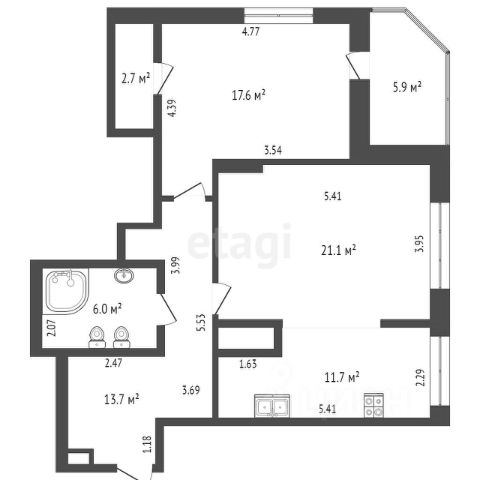 Номер в базе: 11734780 Сдаю 2-комнатную квартиру 70 м2 (квадратных метров) в Тюмени.
