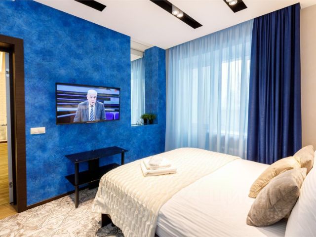 Размещение до 4 человек, спальные места - двуспальная кровать и двуспальный диван. Квартира полностью укомплектована мебелью, бытовой техникой, посудой. Имеется в наличии все, что необходимо для комфортного проживания вне дома: высокоскоростной интернет Wi-Fi, цифровое телевидение, 2 телевизора ЖК, стиральная машина, утюг, фен, средства личной гигиены ( шампунь, гель для душа, зубная паста с щеткой, швейный и бритвенный набор), одноразовые тапочки, комплект из 3-х полотенец на каждого гостя, белое постельное белье сатин-страйп 100% хлопок. Во дворе дома есть парковка.