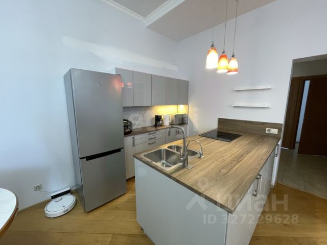 В квартире имеется вся необходимая мебель: в одной комнате большая двуспальная кровать 1,8 метра, шкаф, комод, телевизор и кондиционер, в другой диван и расклюдывпющееся кресло-кровать. Просторная кухня 12 кв. м. оборудована современной бытовой техникой, включая холодильник, варочную панель, духовой шкаф, чайник и микроволновку.