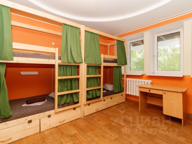 Уютный хостел федеральной сети хостелов "ХостелыРУС - Тюмень" расположен в одном из самых динамичных районов Тюмени в пешей доступности от самого большого ТРЦ Тюмени "Кристалл", ТЦ "Орион", "МЕТРО", "Лента", "Леруа Мерлен", "Ашан". В непосредственной близости находится ОКБ 1 (Патрушево), ОКБ 2, МСЧ "Нефтяник", Федеральный центр нейрохирургии, Клинический госпиталь "Мать и дитя", Тюменский кардиологический центр, Центр олимпийской подготовки "Тюмень-Дзюдо", Тюменский индустриальный университет (Нефтегаз) и другие значимые социальные объекты города. Остановка общественного транспорта "Революции (Мельникайте)" в 50 метрах. Расстояние до железнодорожного вокзала - 7,5 км., международного аэропорта Рощино - 18 км., автовокзала - 6 км., набережной - 8 км. Для гостей хостела предусмотрено комфортное размещение в общих 6-ти и 8-ми местных мужских и женских номерах с удобными двухуровневыми кроватями 200*90 см, а также индивидуальные 2х местные номера с раздельными и общими кроватями. Каждая кровать в общих номерах оборудована индивидуальными шторками, розетками и светильником, органайзером для создания уютной атмосферы и возможности уединения. Двухместные номера оборудованы современными ТВ с большим количеством каналов. К услугам гостей хостела - круглосуточная стойка регистрации, оборудованная кухня, лаундж-зона с ТВ, индивидуальные санузлы, бесплатный wi-fi, постельное белье, полотенца, тапочки, персональные шкафчики с замком, стиральная машинка, гладильные принадлежности, большая свободная парковка, камера хранения багажа. Предоставляется в отеле завтрак (каша, хлопья с молоком, чай, кофе). 6-ми местный общий номер с тремя двухъярусными деревянными кроватями. Каждая кровать оборудована индивидуальными шторками, светильником, розетками, крючками, органайзером для хранения мелких вещей, ящиками для хранения одежды и обуви. Спальное место имеет размер 200*80см, укомплектовано ортопедическим матрацем, подушкой 70*40см, сатиновым постельным бельем, полотенцем. Каждому гостю предоставляется индивидуальный локер 40*40*40см с ключом. Номер оборудован вешалками и крючками для одежды для общего пользования, письменным столом, стульями. Удобства общие.