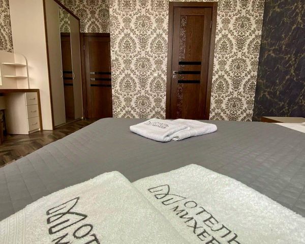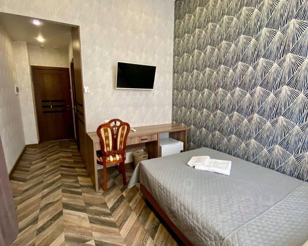 В номере есть все, что нужно для комфортного проживания: собственная душевая кабина, туалет, полотенца, тапочки, крючки для одежды, телевизор, широкая двухспальная кровать, постельное белье, шампунь, гель для душа, мыло.