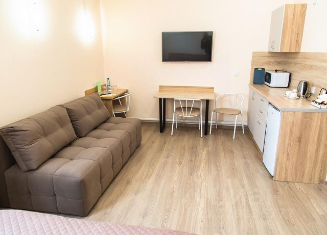 В номере: двуспальная кровать 180*200, диван, телефон, TV, Wi-Fi, сейф, кондиционер, жалюзи Blackout, электрочайник, кофе-машина капсульная, холодильник, микроволновая печь, обеденный стол с 4 мягкими стульями, набор посуды, гардероб, вода питьевая, чайные и кофейные принадлежности (предоставляются при заезде), детская кроватка (по запросу).