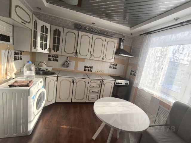 Современная бытовая техника: варочная панель, духовой шкаф, вытяжка, двухкамерный холодильник, электрочайник, СВЧ, фен, утюг, стиральная машина.