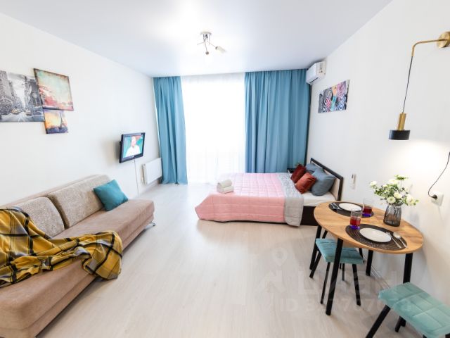 В апартаментах присутствуют все необходимые удобства для проживания, фото и видео сессий, а также проведения различных мероприятий и молодежных вечеринок. Общая площадь — 50 м².