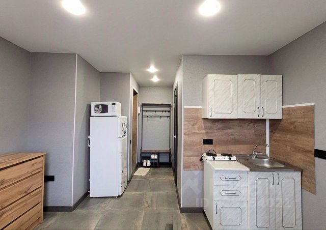 Сдаётся уютная студия в современном жилом комплексе! В квартире выполнен качественный евроремонт. Здесь есть всё необходимое для комфортного проживания: на кухне и в комнате установлена современная мебель, а также техника - кондиционер, холодильник, телевизор и стиральная машина. Вокруг дома есть всё необходимое для комфортной жизни: в шаговой доступности находятся детские сады, магазины и кофейни. Хорошая транспортная доступность позволяет легко добраться до других районов города. Аренда оформляется напрямую от собственника, без комиссии. Квартира идеально подойдёт для одного или двух человек.