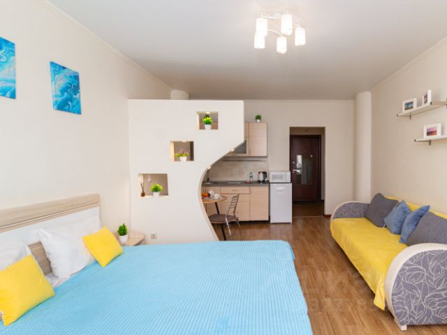 Спальное место: диван и раскладушка. Обеденная зона: стол и стулья. Мебель для хранения: шкаф для одежды, стеллажи или полки. Кухня: холодильник, плита, варочная панель, микроволновка, электрический чайник. Комната: телевизор, wifi. Для ухода: стиральная машина, бойлер. Дополнительно: утюг и гладильная доска, фен. Кухня : тарелки, кружки, столовые приборы (по одному набору на человека), кастрюля, сковорода, разделочная доска; чай, сахар, специи, подсолнечное масло; губка для посуды, средства для уборки. Ванная: шампунь, гель для душа, дезодорант, ушные палочки. Бытовая химия: порошок стиральный, кондиционер для белья, все моющие дезинфицирующие средства.