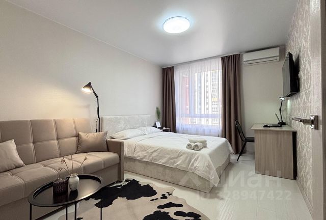 Прекрасная новая видовая квартира-студия ждет вас! Весь город на ладони! Приятный бонус для гостей на новогодние праздники: все фейерверки города, не выходя из дома! Внимание, стоимость указана за проживание до 2 человек! Доплата за проживание 3-го человека -200 рублей. Не заселяем гостей с признаками опьянения! Студия оснащена всем необходимым для удобного и приятного пребывания: Кухня с бытовой техникой, микроволновой печью, холодильником и всеми необходимыми принадлежностями. Уютное спальное место с двуспальной кроватью для спокойного сна. Раскладной диван 1,5-спальный бесплатный и быстрый Wi-Fi и телевидение Свежие полотенца и постельное белье предоставляются и готовы к вашему приезду. балкон с панорамными окнами открывает прекрасный вид на город с 18 этажа • Стандартное время заселения: с 14:00 выезд до 12:00 Ранний заезд и поздний выезд возможен по предварительной договоренности - 200 р/час Бронируется заранее по предоплате, заключается договор В случае отмены брони позднее, чем за 3 дня -сумма брони не возвращается При заселении вносится залог - 2000 рублей, возвращается в день отъезда после проверки квартиры, но не позднее 22-00. Мы дорожим своей репутацией и гордимся качеством нашей квартиры, поэтому строго запрещено: - курение любых сигарет и курительных смесей в квартире, на балконе, в подъезде -распитие спиртных напитков -нахождение в квартире более количества заявленных гостей -неосторожное обращение с любым имуществом, приведшее к порче или поломке -неподобающее поведение, нарушающее покой жителей дома в любое время суток - проведение вечеринок - заселение с животными - нарушение тишины с 22:00 до 09:00 и с 13:00 до 15:00 За любое нарушение, жалобу, признаки курения , следы порчи белья, техники, мебели и другого имущества -ЗАЛОГ НЕ ВОЗВРАЩАЕТСЯ.