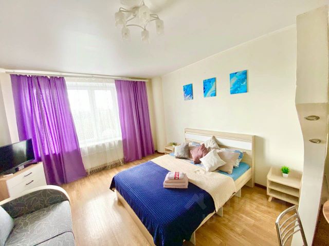 В нйовом Ж.К. Салют, прекрасная квартира, в отличном состоянии, ждёт гостей нашего города . Рядом набережная, т. Ц.Па-на-Ма, институты ТИУ, филармония, городской парк, цирк, ЖД вокзал, аквапарк Лето-Лето,