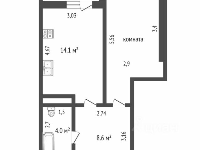 От года, 24 000 ₽ + 3 000 ₽ комм. платежи (без счётчиков), комиссия 60%, без залога