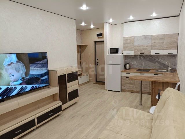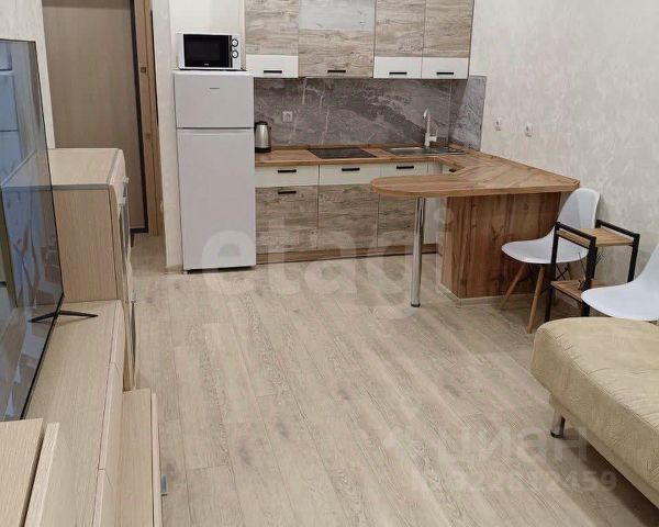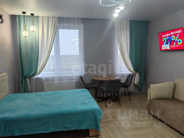 Сдаётся квартира-студия на длительный срок, выполнен свежий ремонт в стиле модерн, пол ламинат, прочные двери, тройной стеклопакет на окнах. Новая мебель, диван раскладной телевизор, необходимая бытовая техника, стиральная машина автомат, холодильник, свч печь, утюг, гладильная доска, подогрев пола в с/узле, радиаторы с регулировкой температуры, закрытый двор, камеры видеонаблюдения, парковка наземная. Оплата ежемесячно, дополнительно оплата по счётчикам. Комиссия риелтора по факту заселения.