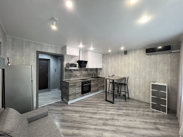 Чистая большая студия в уютном доме на 7 этаже. Район для проживания очень удобен, есть рядом школа, сад, удобная транспортная развязка, торговый центр. Напротив дома большая парковка. Студия сдается на длительный срок от собственника.