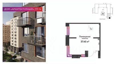 - Площадь 37,45 м2.
