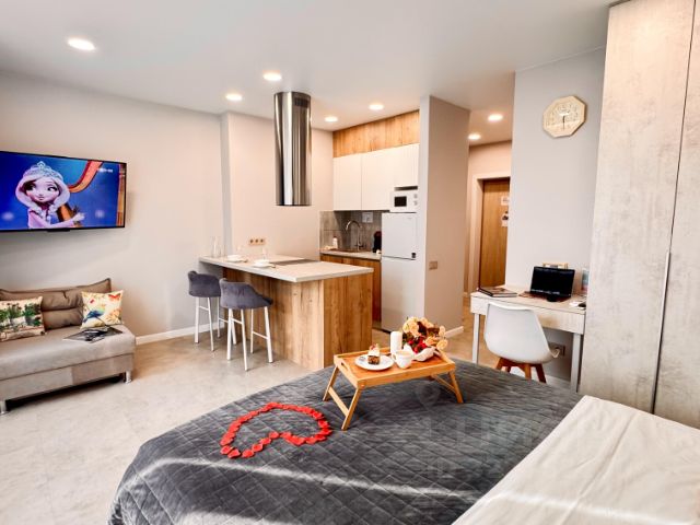 Новая современная студия с панорамными окнами. Рядом ТРЦ Кристалл, Ашан, метро, Лента, ЖК Апрель, центр Мать и дитя, неврологический центр, медицинский городок, ЖК Патрушево, ЖК Ожогино. До аквапарка на машине 15 минут.